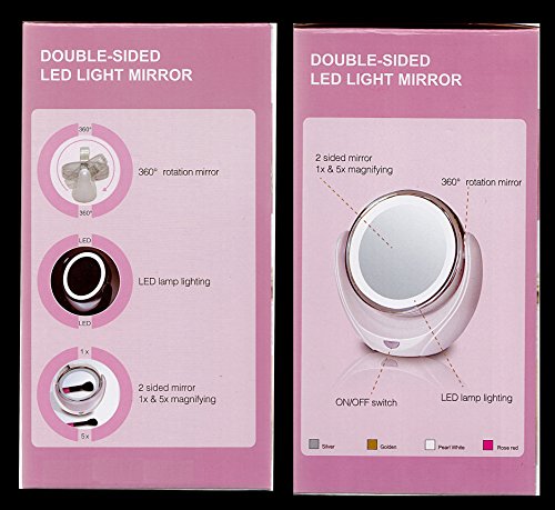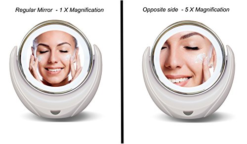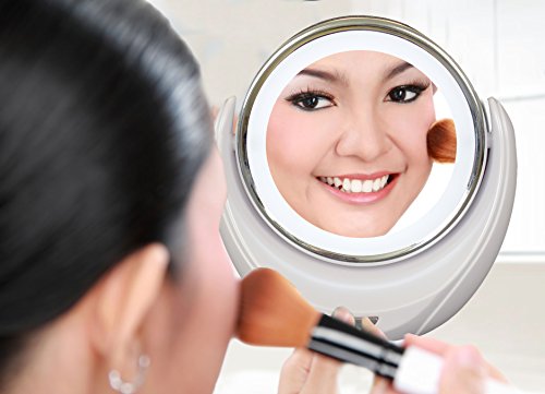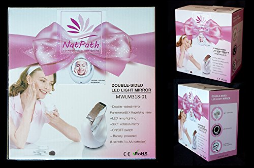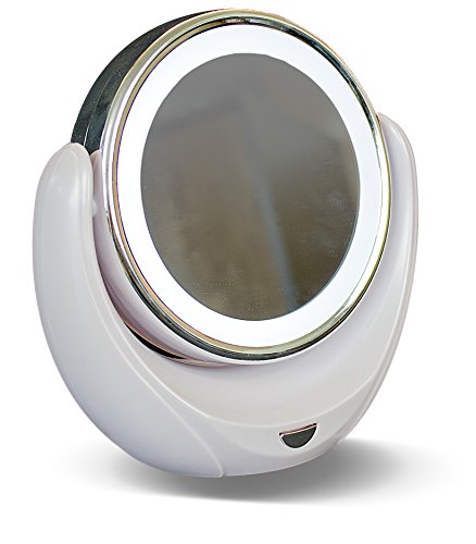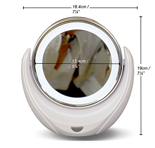 Makeup, Cosmetic, Vanity table top mirror in Pearlescent White by NAT-PATH with LED lights. Double sided to allow for 1 x and 5 x magnification