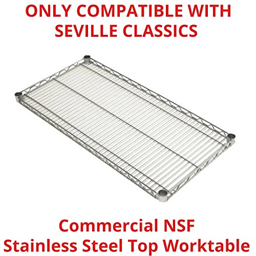 Seville Classics SHE18308SH Commercial NSF Stainless Steel Top Worktable Shelf, 18" D x 48" W x 1" H