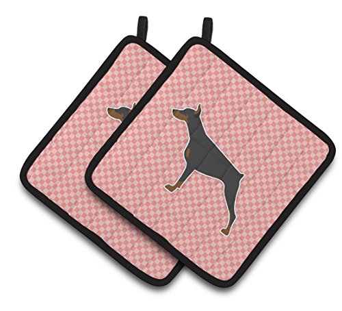 Caroline's Treasures Doberman Pinscher Checkerboard Pink Pair of Pot Holders BB3660PTHD, 7.5HX7.5W, Multicolor