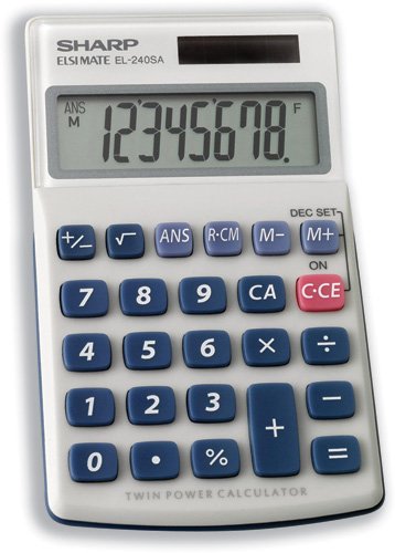 -. Title : Sharp Calculator Handheld Battery Solar-power 8 Digit 3 Key Memory 70x116x16mm Ref EL240SAB