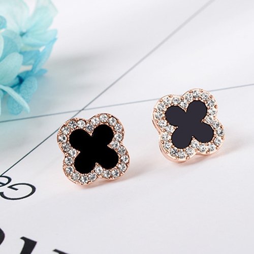 Sweet Princess 4 Leaf Clover Clip on Earrings Non Pierced Rose Gold Plated