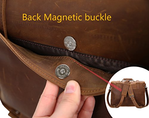 -. Feature : Feature: 4 ways to carry this messenger bag, carry as a handbag, shoulder bag, cross body bag or a backpack+ Large size and big capacity+3 buckles for safer access+2 big main compartments. / Material: High quality crazy horse leather+ Polyester fiber lining for this messenger bag. / Structure: 1 front big main compartment with 2 open pockets without zipper. 1 back big main compartment for your 17" laptop, books, magazines, books, documents, etc. 1 middle big zipper pocket.2 side open pockets.1 back magnetic buckle pocket for some easy taking things. / Closure: 3 flap-over pin buckles for safer closure. / Dimensions: L:17.3" W:7.87" H:12.99" Weight: 5.5 pounds