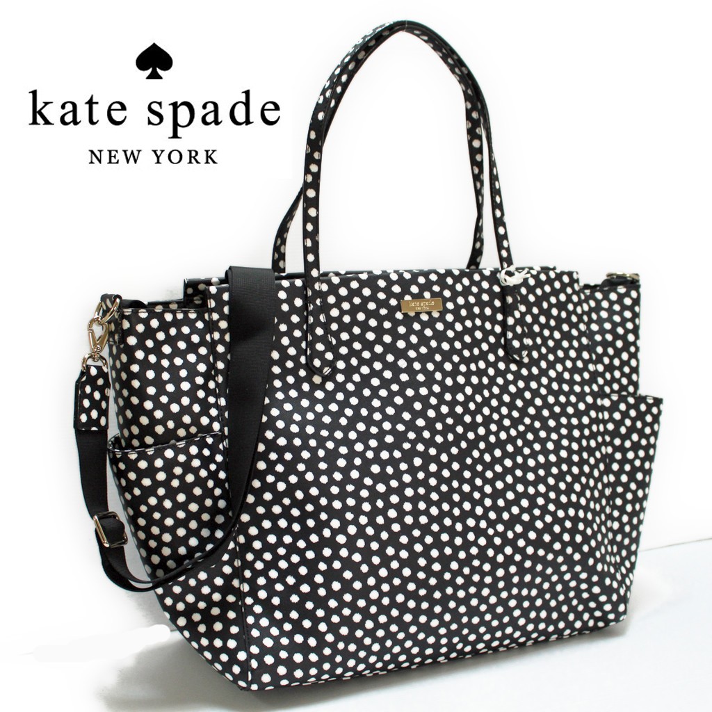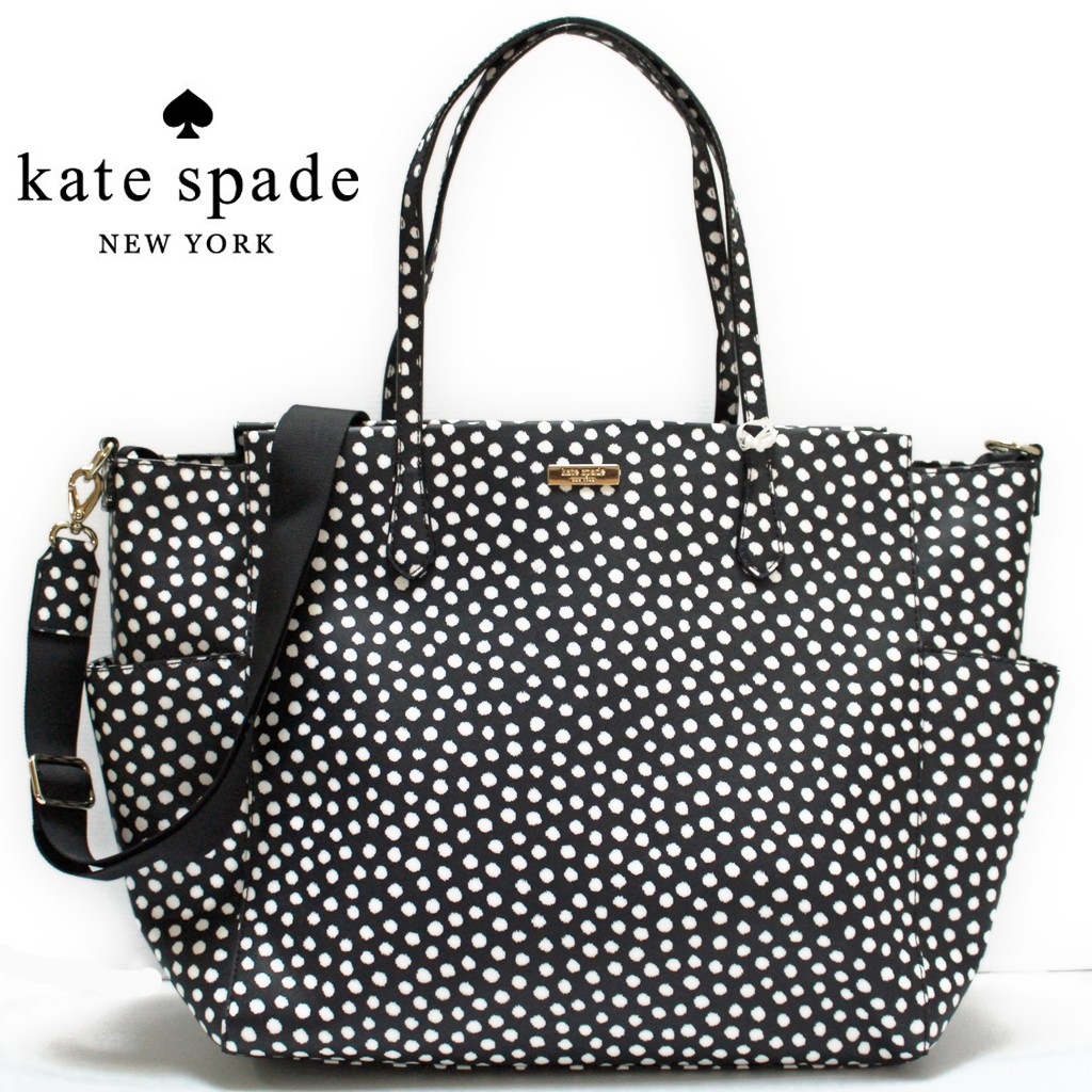 ■商品名ケイトスペード バッグ マザーズバッグ KATE SPADE Kaylie baby bag マルチカラー(水玉)■仕様開閉:ファスナー式内側:ファスナーポケット1,オープンポケット2,ベビーカー取付用ストラップ有外側:オープンポケット2,マグネットポケット1■カラー:Black, White(マルチカラー)■サイズ:H32cmxWトップ49cm-ボトム36cmxD15cmショルダー最大105cm(調節,取外可)持ち手55cm■素材:PVC■付属品:オムツ取替え用シート、Brandタグ、ケアカード