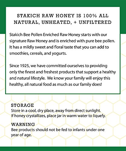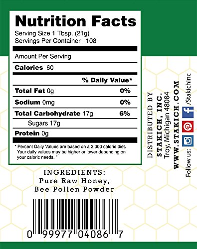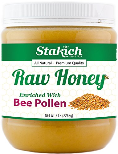 Stakich BEE POLLEN Enriched RAW HONEY - 100% Pure, Unprocessed, Unheated - 5 lb (80 oz)