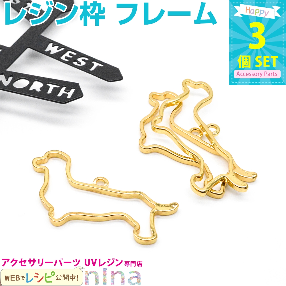 ■商品名:レジン枠 犬 ドッグ ゴールド 3個セット 1