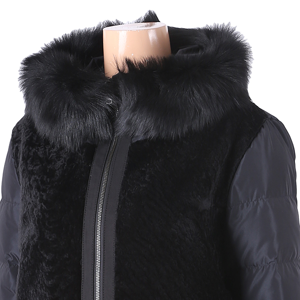 무스탕배색후드구스다운하프재킷