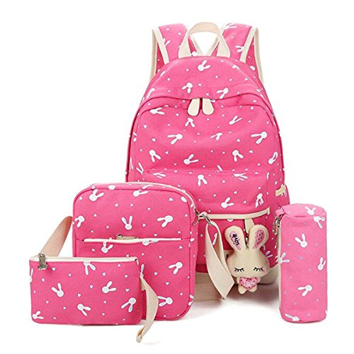 -. Feature : It can store 14 inch Laptop, glasses, cosmetic and pocket money, phone, magazine, etc. / It is ideal for young girls or boys as bookbag, rucksack schoolbag, casual daypack for daily use at school, work, weekend, occasional travel, gyms, hiking etc. / Perfect for traveling, weekend getaways, school, shopping and other outdoor activities in daily life. / Material: High quality and lightweight Canvas. / Package include: 1 backpack, 1 shoulder Bag, 1 small Bag, 1 pencil Bag, 1 rabbit pendant)
