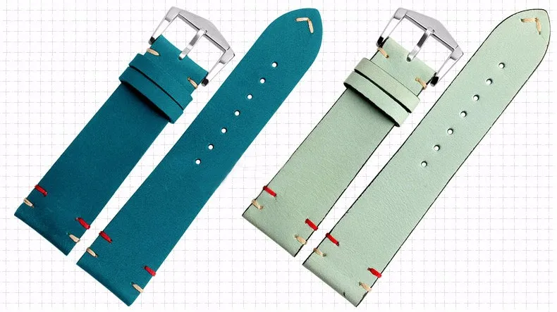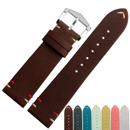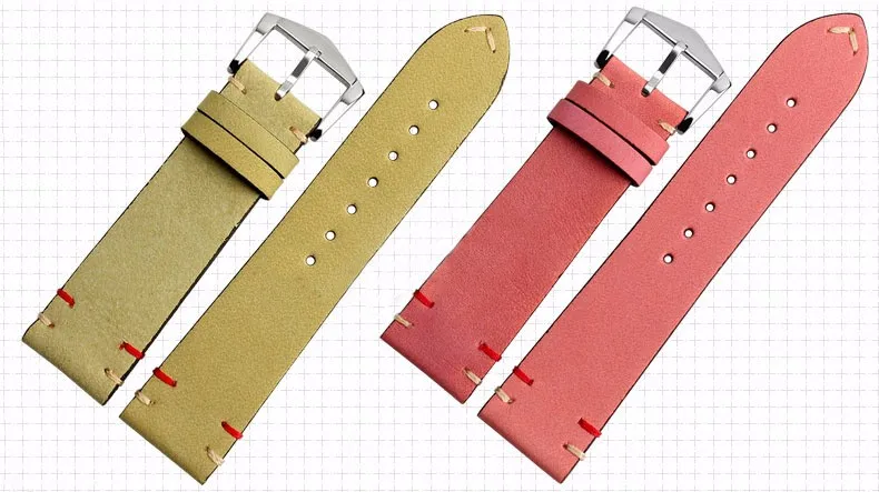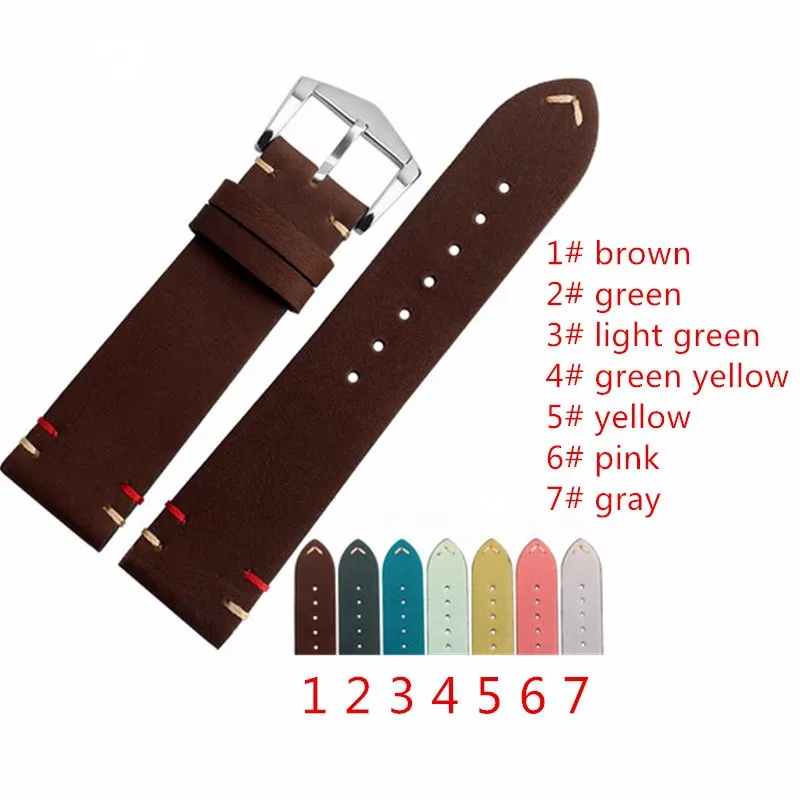 | [해외]20 22 미리메터 남자 레이디 소 스웨이드 가죽 브라운 녹색 노란색 핑크 옐로우 그레이 빈티지 시계 밴드 스트랩 벨트 실버 닦았 버클 |
