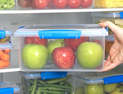 Sistema Fresh Collection Rectangle Food Storage Container, 21 Cup, Clear/Marine Blue