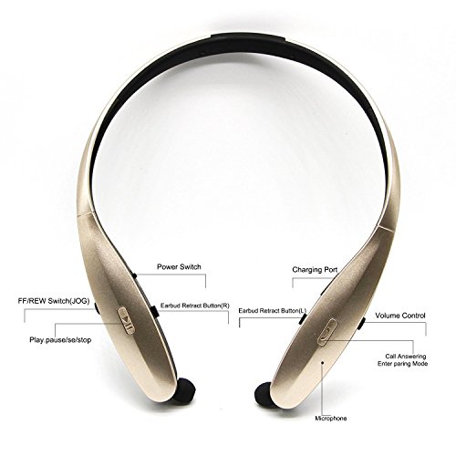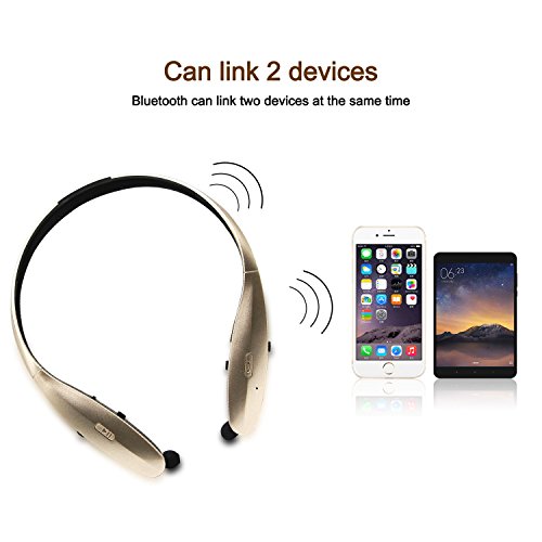 -. Title : SUNWAND ®Wireless Bluetooth Stereo Headsets Universal Vibration Flex Neck Strap Style Earphone Headphone for iPhone, Samsung, Note Android Cellphones Enabled Bluetooth Device(gold)