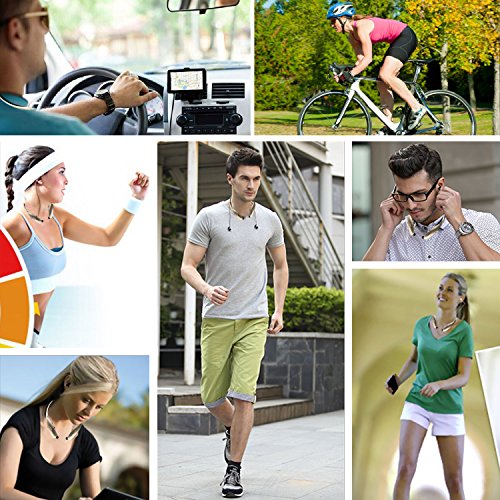 -. Feature : Stereo Bluetooth headset for wireless music plus call functionality / This headsets with less background noise, sounds very clear / Two powerful audio drivers on each side offering balanced audio and crystal clear sounds, providing a comfortable and dynamic listening experience. / Magnetic ear buds snap into place when not in use; music controls on neck strap.10 Hours Of Listening/20 Hours Of Talk Time / Best workout sweatproof bluetooth headsets. Great for Running, Jogging, Hiking, Biking, Gym etc. Stay in Ear Tech with Comfortable Ear Hook.