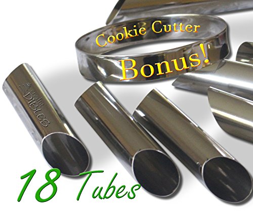 Cannoli Tubes, Set of 18 with FREE round Cookie cutter, 4.5 Inch. Stainless steel.