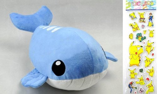 Pokemon Plush Toy - Wailord Whale King Doll (Size L) Around 33cm 13" + Pokemon Sticker