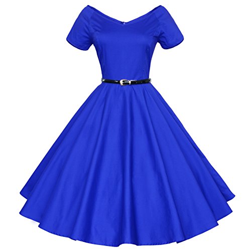 Maggie Tang 60s Vintage V-neck Swing Rockabilly Pinup Party Dress Royalblue S