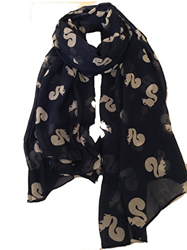 Product DescriptionNavy blue with white squirrel design scarf/wrap. Lovely long scarf / wrap, Fantastic Gift Size 95 X 185 cm 100% viscose0