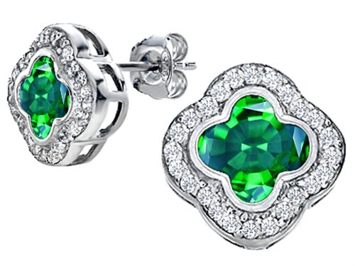 The attractive Star K Clover Earrings Studs with 8mm Clover Cut Simulated Emerald, crafted in 925 Sterling Silver . This amazing design is set with 2 stones bezel set green Clover Cubic Zirconia, 48 stones channel set colorless Round Brilliant Cubic Zirconia. This style measures 11.00 mm wide, 11.00 mm long.Warranty. Warranty: - This item is covered by our exclusive Silver Shield Lifetime Warranty. This exclusive lifetime coverage is offered ONLY by Finejewelers so please shop with confidence, our quality is guaranteed for life!Feature