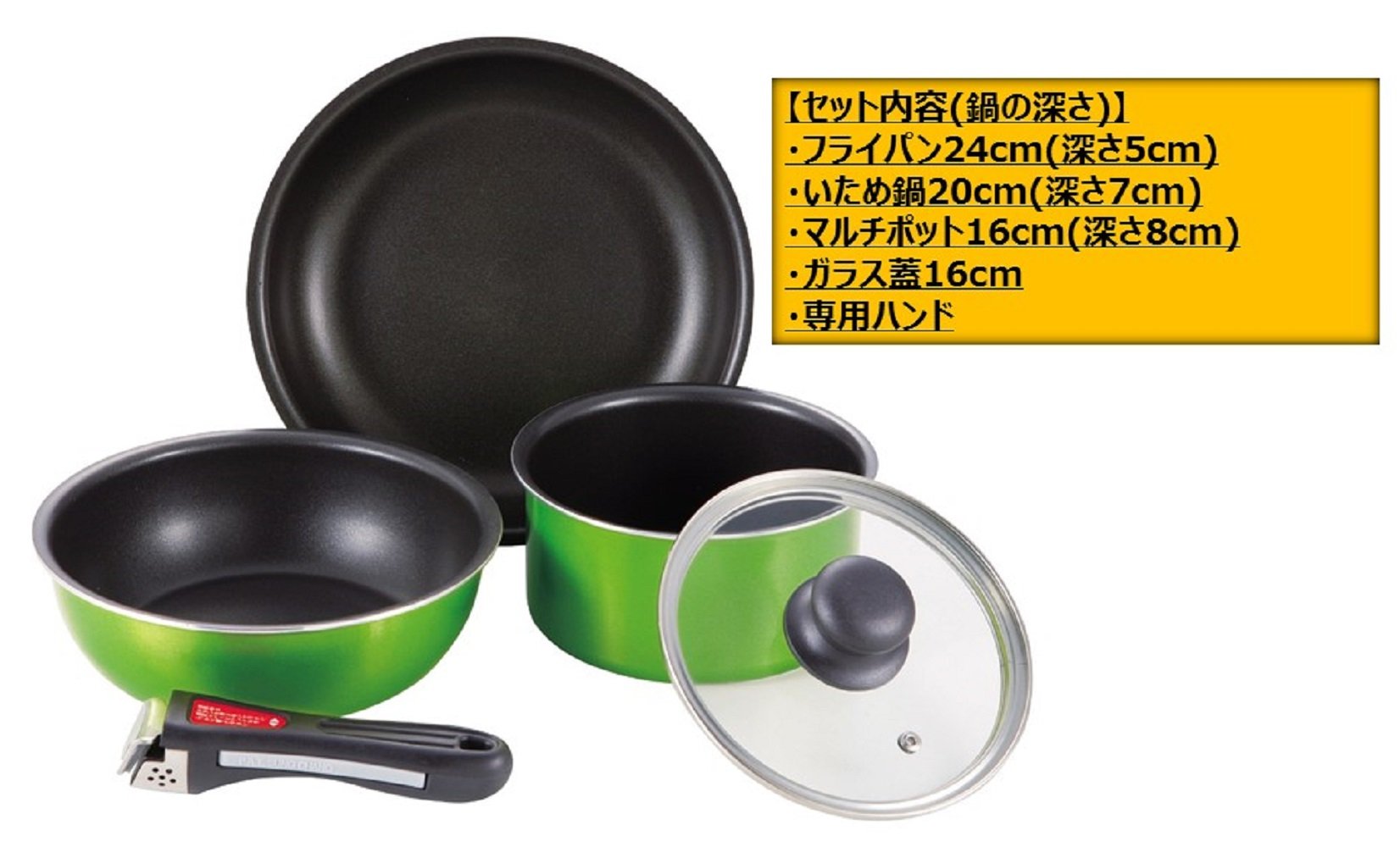 Parukinzoku Claire fluorine processing IH corresponding Cook wear mini 5 piece set Green H-9694