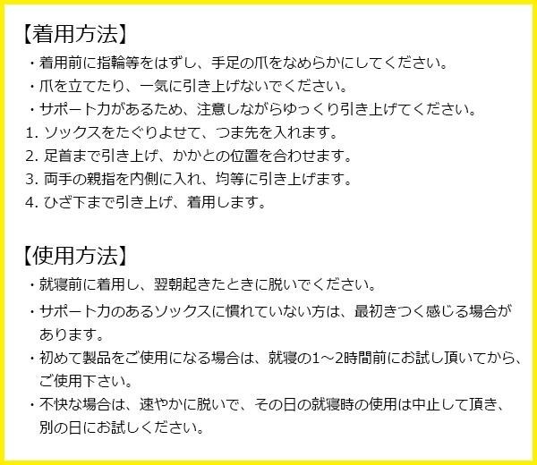 | 寝るとき専用設計の着圧ソックスで寝ている間にスッキリ美脚。 |