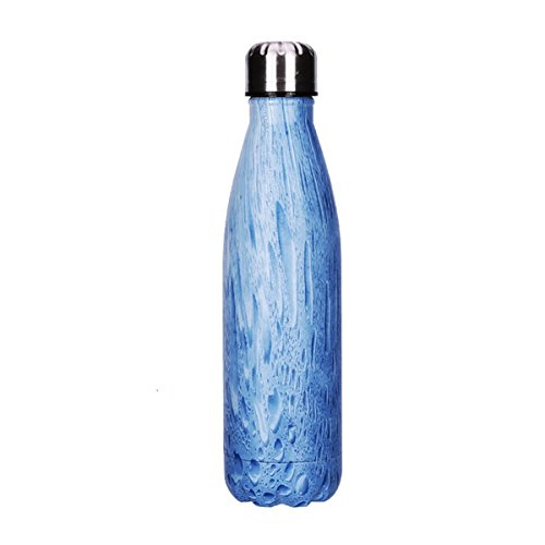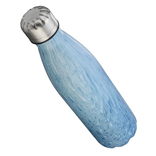 Stainless steel sport bottle with 17oz (500ml) capacity. The water bottle will keep liquids hot for up to 12 hours and cold for up to 24 hours.