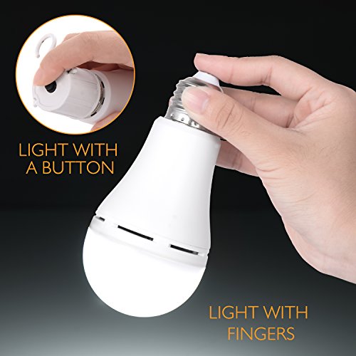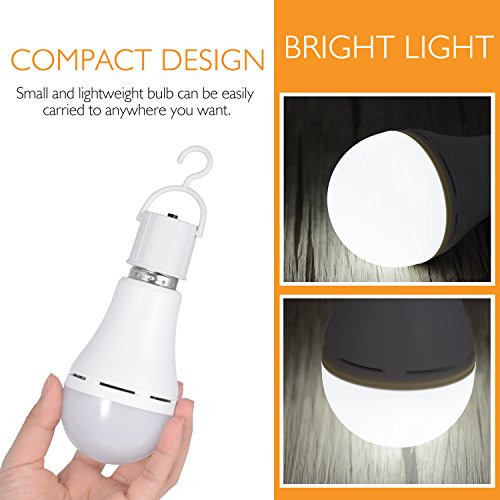 Sunnest 9W Emergency LED Light Bulb, Rechargeable Lamp Portable LED Lantern Tent Light with Built-in Battery and Hang Hook for Camping, Hiking, Fishing, Home Lighting and Power Failure E26/E27