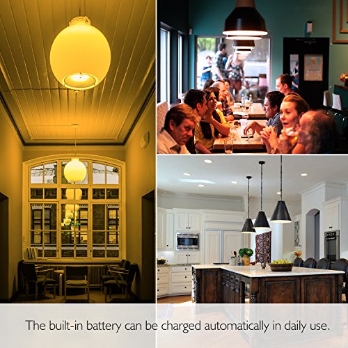 - AUTO-LIGHT DESIGN -- During power cuts, the emergency installed bulb will light automatically after 1 second, saving energy intelligent, helping to light your home for 4-5 hours. Goodbye to dark when meeting power failure.