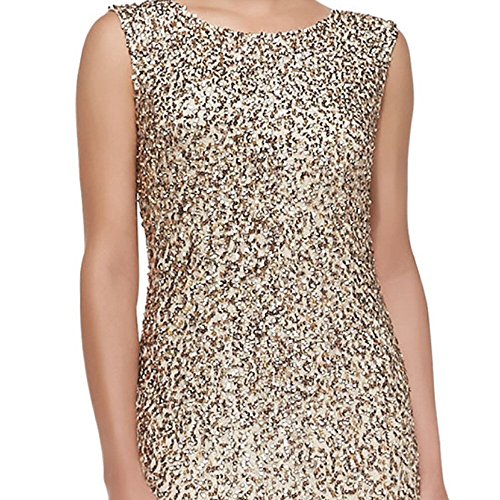 Aidan Mattox lace gown covered in sequins. Boat neckline. Sleeveless. A-line silhouette. Back zip; scoop back.