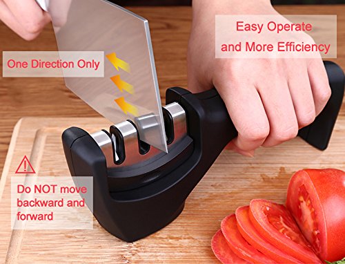 - ★[Simple and Effective Results]: Only 3 to 4 pulls through the knife sharpener is all it takes to sharpen your blunt blades. No more grinding and damaging your precious knives with hand-held stones