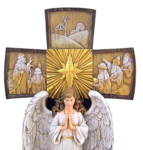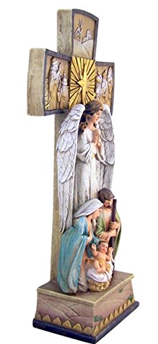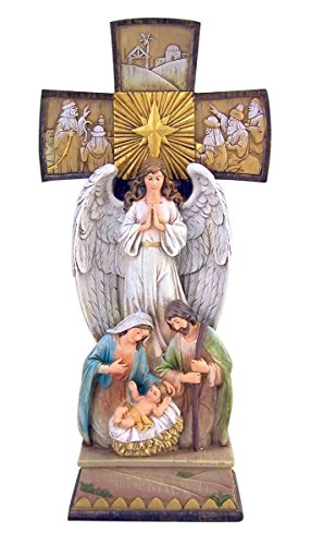 Standing Nativity Cross with Angel and Holy Family Resin Christmas Figurine, 14 Inch