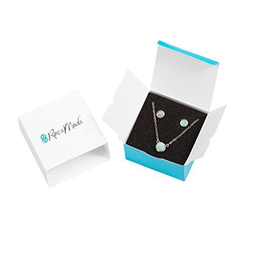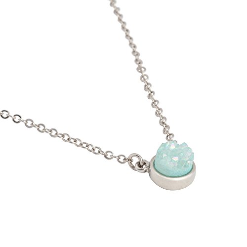 Roca Moda delicate, natural blue, crystal druzy necklace and earring set. The necklace & matching druzy stud earrings are silver plated in a casement setting. The chain is 16"L, with a lobster clasp closure. Adjust necklace length with a 2" extension chain is finished with Roca Moda logo charm. Individual gift box included.Feature