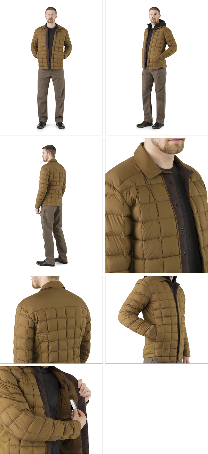 스타일리쉬한 누빔 디자인이 돋보이는 경량의 다운 셔츠-재킷. 셔츠 깃을 닮은 톡특한 칼라 형태가 세련된 스타일을 연출해준다. 750 필파워 유러피언 구스다운이 충전돼 우수한 보온력을 갖췄으며, 발수 가공 처리로 기능성까지 겸비했다.