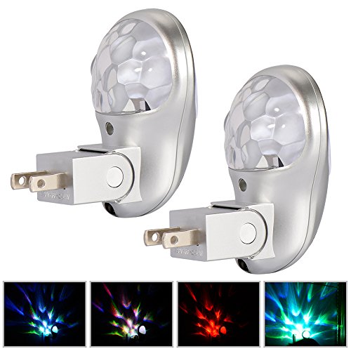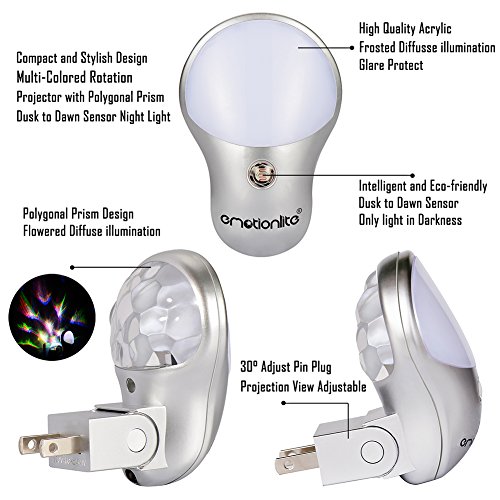 Emotionlite 2 Pack LED Night Light with Dusk to Dawn Sensor Plug in Children Night lamp for Kid's Bedroom Bathroom Hallway Stairways Corridor Closet Any Dark Room Energy Saving Multi-Colored Rotation