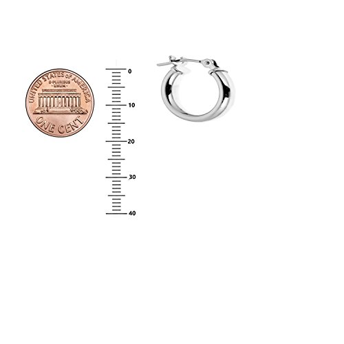 14K Real White Gold Tubular Shiny Round Hoops Hoop Earrings. Snap hook clasp makes the earring stay in place when worn.