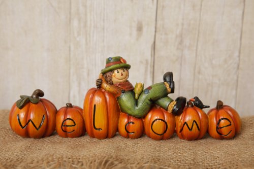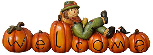 Your Hearts Delight Pumpkin/Scarecrow Welcome Fall Fun Word Sign, 9-1/2 by 2 by 3-1/4-Inch