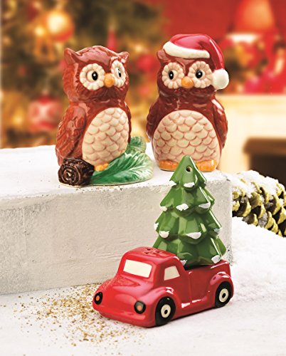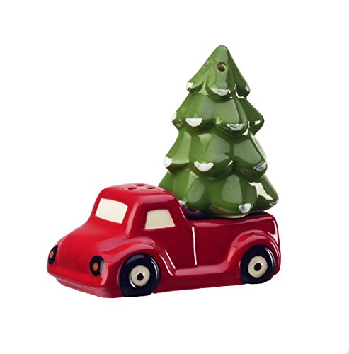 [Product Information]- The season red truck and tree salt and pepper two piece set is made with hand painted glazed ceramic that accentuates the features of the truck and tree