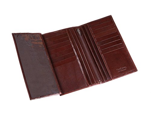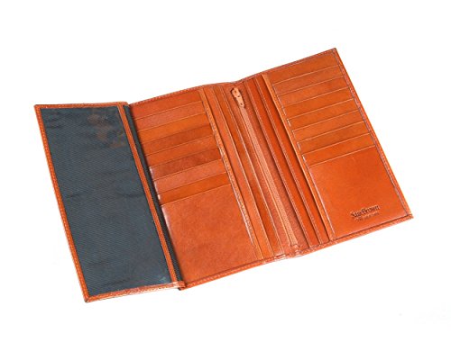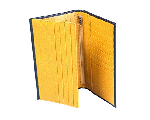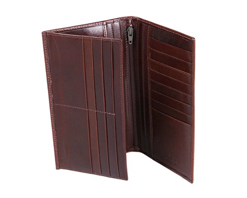 Studio : SageBrown Publisher : SageBrown Binding : Apparel Product Description This quality suit jacket front pocket tall wallet is made from calf hide in a smooth full grain or saffiano texture. The front and back are stylishly plain and ideal for personalisation. Inside there's an extra page attached to the left outer edge. On this page there are eight credit card slots with beautiful turned edges and on the under side is a full length clear window with a leather bound edge. Under this flap there are another eight card slots each side plus two full length slip pockets for cash. In the middle there's a handy zip pocket with space to the left and right. 0