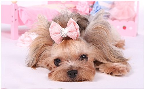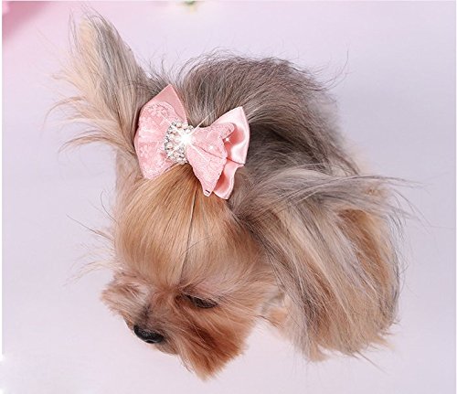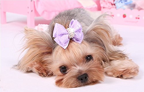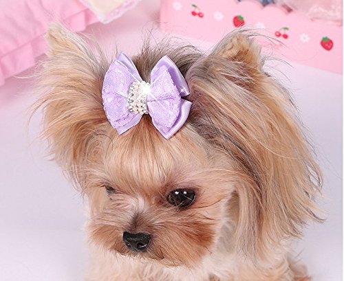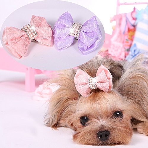 -. Title : Chicpaw 2pcs Luxury Pet Dog Hairpin Bow Tie Headdress Hair Clip Gift Teddy Yorkshire Hair Pin PINK+PURPLE