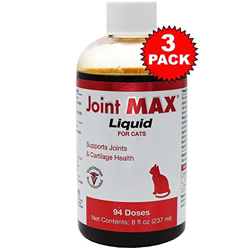 -. Binding : Misc. -. Brand : Joint Max -. Feature : Excellent option for cats suffering from osteoarthritis and other conditions affecting the joints / Used long term in normal cats to help keep their joints healthy / Incorporates a balanced formula of Glucosamine, Chondroitin and Vitamin C into one highly palatable liquid. It also contains MSM, Taurine, and Manganese for added joint support / Helps combat the stiffness and achiness that occurs when the cartilage between your pet's bones breaks down / It naturally lubricates your pet's joints and helps to gradually rebuild cartilage -. Label : Joint MAX -. Manufacturer : Joint MAX -. MPN : 3PKJMAXLIQ8 -. PackageQuantity : 3 -. PartNumber : 3PKJMAXLIQ8 -. ProductGroup : Pet Products -. ProductTypeName : PET_SUPPLIES -. Publisher : Joint MAX -. Studio : Joint MAX -. Title : 3 PACK Joint MAX Liquid for Cats (24 oz)