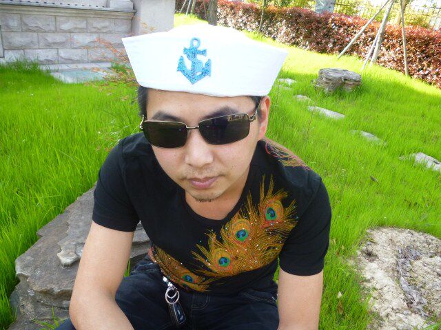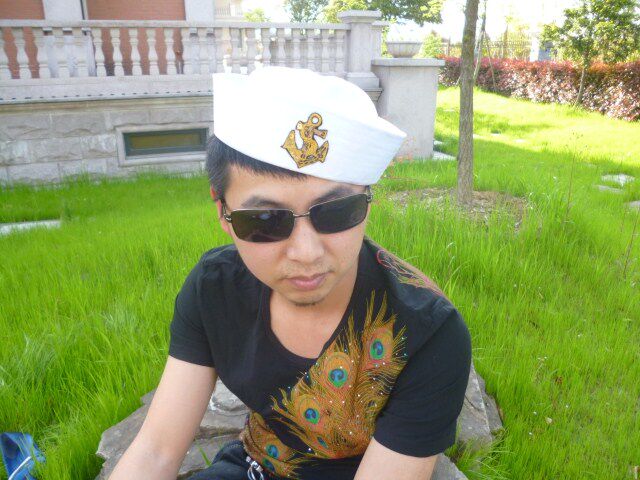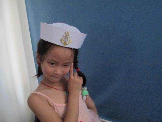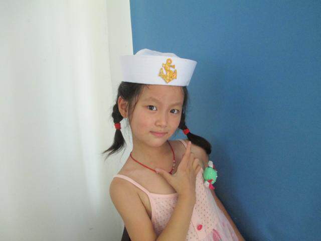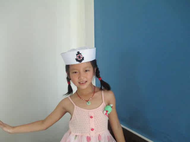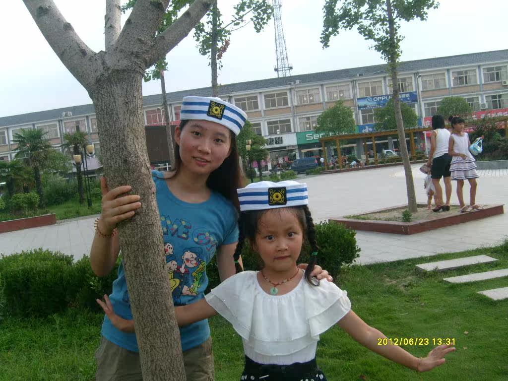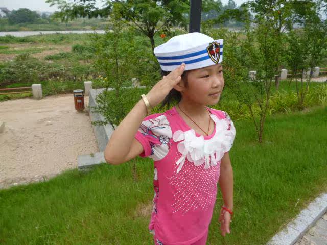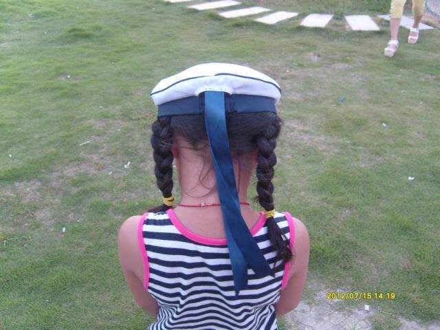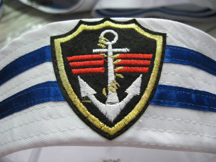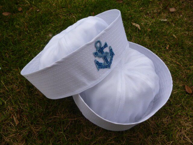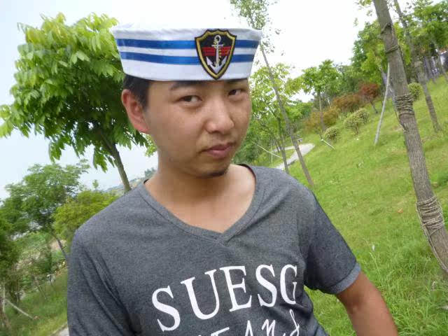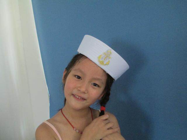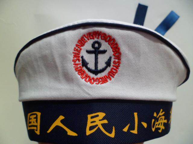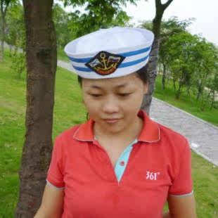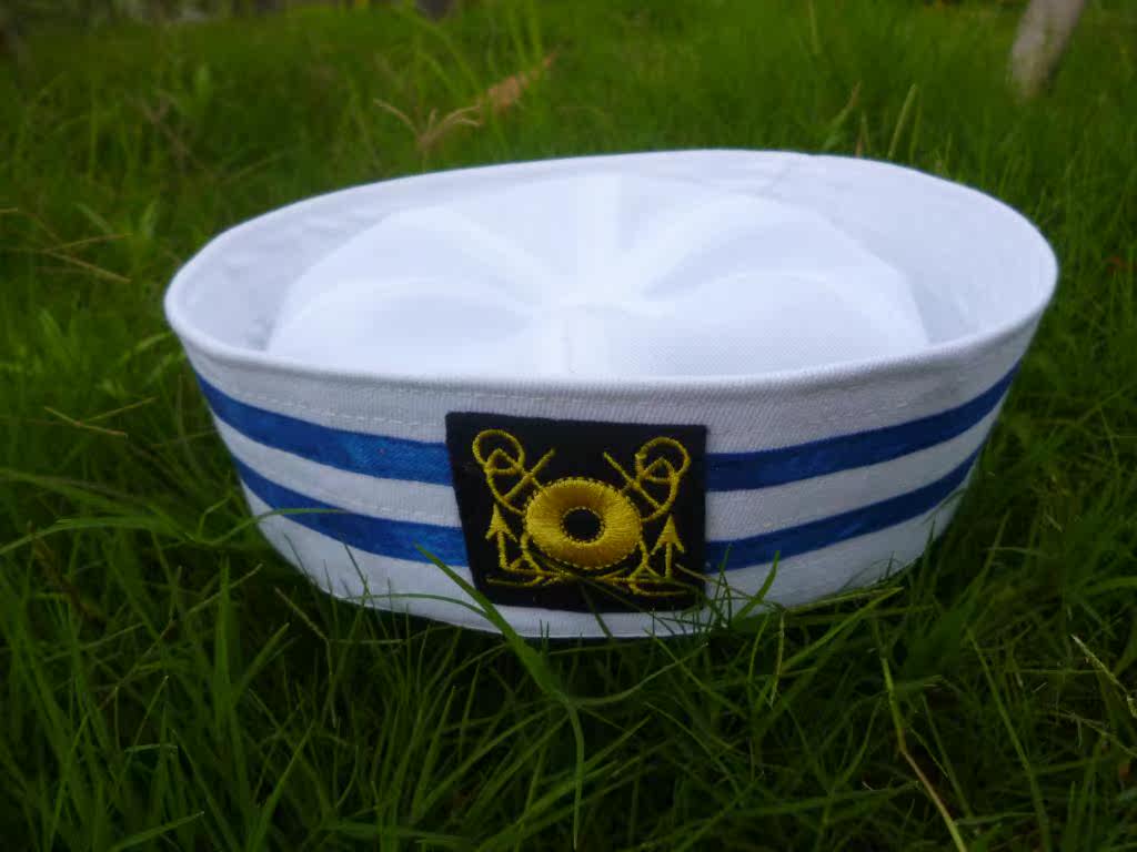 菱形标蓝丝带水手帽