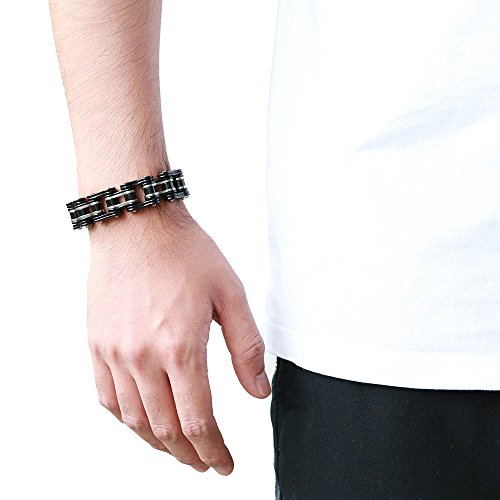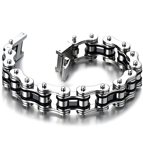 -. Title : Masculine Mens Bike Chain Bracelet of Stainless Steel Two-tone Polished