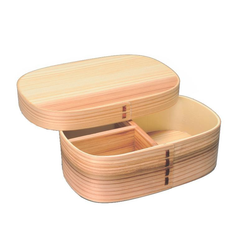 湿度を調整する木の特性を活かし、時間が経っても美味しさを保つ木の弁当箱です。