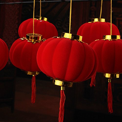 Ornamental red textile lanterns with decorative tassel, would make a great decoration at any Asian themed party or event.