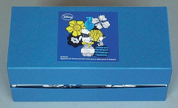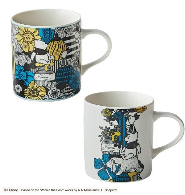 「クマのプーさん」と北欧テイストのボタニカルなアートを組み合わせたモダンデザインが食卓に溶け込みます。乳白色の柔らかな色合いの磁器に、黒・青・黄の配色がフレッシュなイメージです。 |