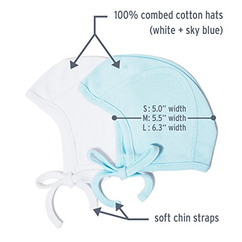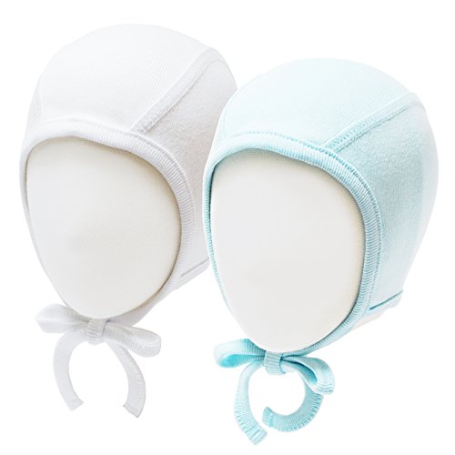 HappyTree 2 Pack Baby Hat Bonnet Soft 100% Combed Cotton Toddler Beanie Pilot Caps, White + Blue