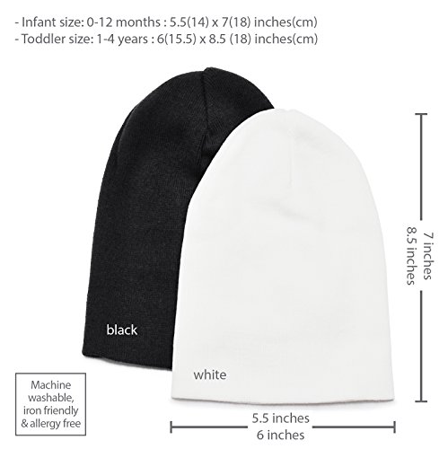HappyTree 2 Pack Baby Hat 100% Cotton Soft Toddler Knit Hat Kids Beanies Caps, Black + White