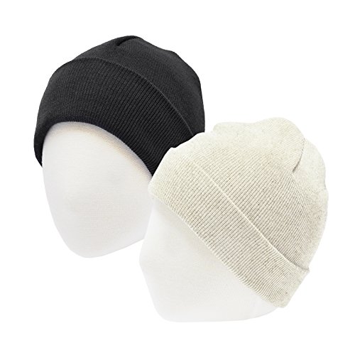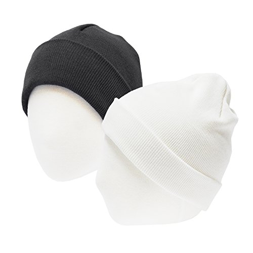 HappyTree 2 Pack Baby Hat 100% Cotton Soft Toddler Knit Hat Kids Beanies Caps, Black + Ivory