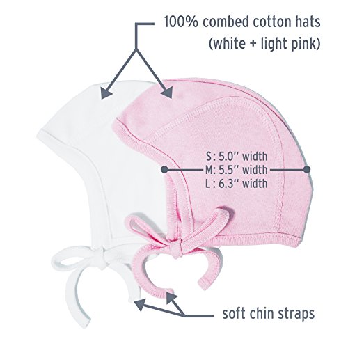 HappyTree 2 Pack Baby Hat Bonnet Soft 100% Combed Cotton Toddler Beanie Pilot Caps, White + Pink