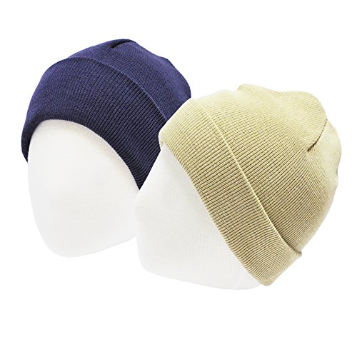 HappyTree 2 Pack Baby Hat 100% Cotton Soft Toddler Knit Hat Kids Beanies Caps, Navy + Beige