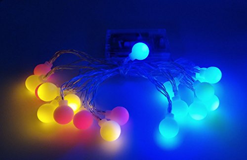 Jefferson Globe String Lights 10ft 20 LED String Lights,Waterproof Ball Lights,Battery-Powered Fairy Twinkle Light Bulb For Garden Patio Party Wedding Christmas Tree Décor (Multicolour)