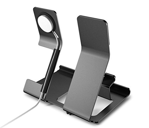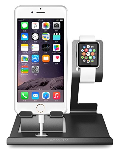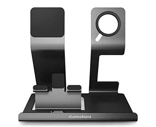 ALUMINUM STAND: sturdy, elegant and functional. iComboStand is a fully functional 3 in 1 holder for simultaneously docking the Apple Watch, iPhone, iPad, Android or tablet. Can be used separately or as a combination. Premium built with a wide, solid base for support, it is very stable with enhanced durability for all devices & enables it won't tip over.
