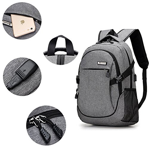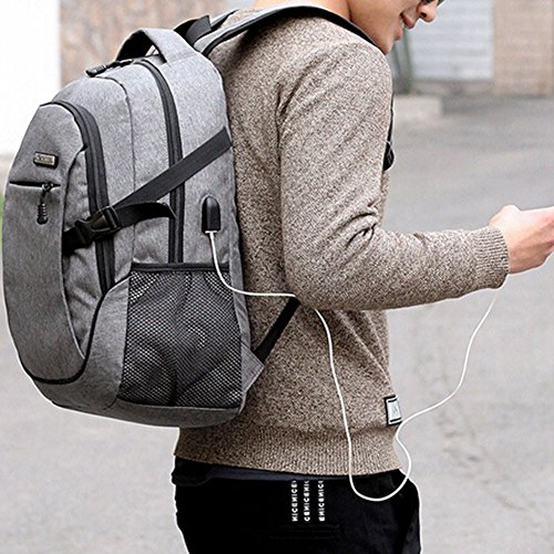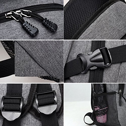 The backpack with three-dimensional design, good load bearing, not deformed. Elegant contour and rigorous seam processing, highlight the backpack ingenuity craft. Product description material : Canvas waterproof fabric size : 11.1" (l) x 7.1" (w) x 18.9" (h)weight : 1.1 lbs., fit laptop size : 15.6 inch color :Black blue grey features this backpack has 3 pockets. Main compartment has well cushioned interior for laptop protection. Two side pockets has bandages set prevent things from falling off oxford waterproof fabric support you walk in drizzle. Do not in heavy rain. Shoulder adjustable straps breathable soft sponge, buffer shock absorption, reduce the pressure of body contact area. High toughness rally material is durable will not be scratched by sharp tools to protect safety note wash it with hot water and alkaline detergent. 1-2cm error of measuring is a reasonable range due to different measurement methods.Feature